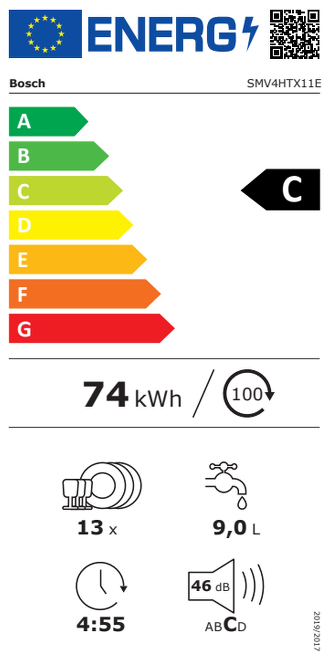 Zmywarka do zabudowy BOSCH SMV4HTX11E W pełni zabudowana zmywarka Bosch 60 cm na 13 kompletów, cicha 46 dB, klasa C, ExtraDry i sterowanie Wi‑Fi. Karta informacyjna produktu Numer katalogowy: SMV4HTX11E check W magazynie: dużo local_shipping WYSYŁKA 24H Cena 2 199,00 zł favorite_border . Nowość Cena 2 199,00 zł favorite_border Do Koszyka favorite_border